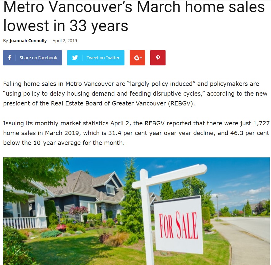 最新數據顯示溫哥華的房屋銷量達到了33年以來的新低。