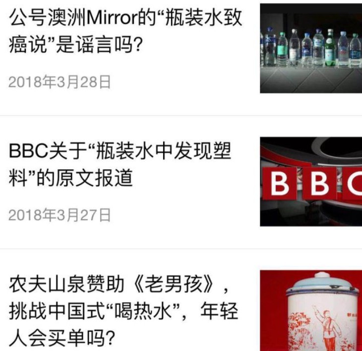 1、原英文文章陳述為93%的瓶裝水檢出了塑料微粒,而微信公號都直接表述為 93%的瓶裝水檢出了塑料有害物質。
