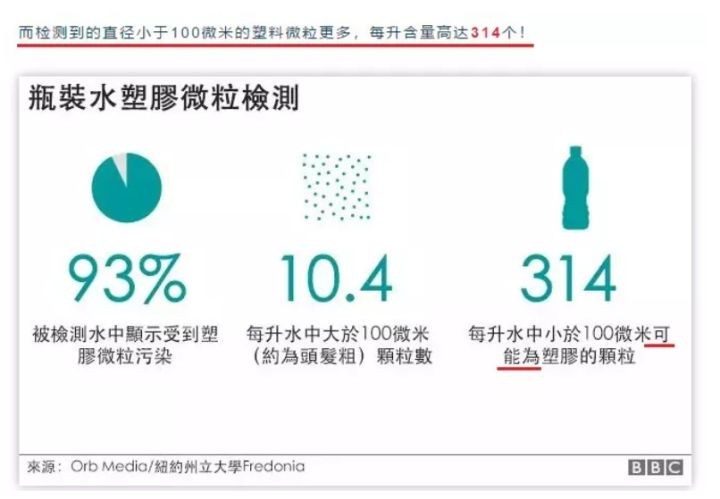 2、BBC表述為“WHO 將就 90% 瓶裝水中發現塑料微粒展開健康評估”。調查報告是紐約州立大學進行的,而不是像公眾號中說的 WHO世界衛生組織的調查報告。