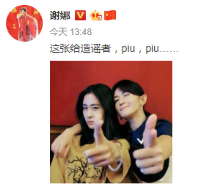 謝娜也在接連微博上曬出自己與張碧晨的聊天記錄和她們倆合影否認此消息真實性。