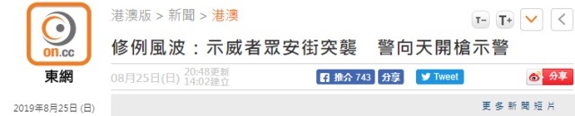 日期: 2019-08-25 | 來源: 環球網 | 有6人參與評論 | 專欄: 香港 | 字體: 小 中 大
