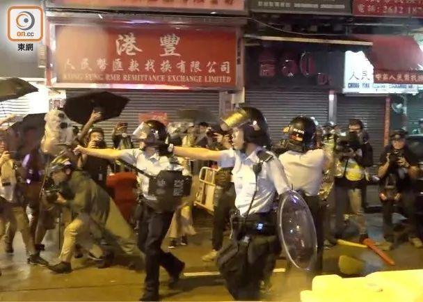 香港“東網”報道稱,在警察後撤的過程中,至少有3名警察拔出配槍,指向示威者。多家港媒報道稱,現場壹度傳出槍聲,有警員鳴槍示警,但不清楚該聲音是否來自裝有實彈的槍。
