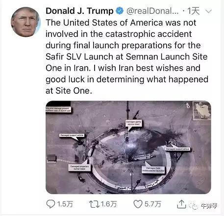 美利坚合众国与伊朗塞姆南第一发射场的一起灾难性的事故无关,当时正在为萨菲尔SLV(Safir SLV)发射作最后准备。我祝福伊朗,祝他们在确认一号发射场事发情况上一切顺利。
