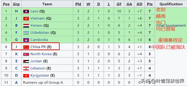H組第2名的老撾,J組的第2名越南,B組的第2名也門,F組的東道主烏茲別克斯坦,均是小組賽3輪7分,4支球隊都以“成績最好的4個小組第2”身份出線,這其中,明年U19亞洲杯的東道主烏茲別克斯坦自動占據1個晉級名額,因此G組的第2名柬埔寨(6分3個淨勝球),也有希望獲得晉級資格,這要等待A組的比賽結束之後才能見分曉。
