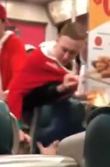 這時,肆周有幾名參與聖誕老人游行(SantaCon)的聖誕裝扮的男子,其中壹名男子在壹只手拿著比薩餅的情況下用力將嫌犯按倒在地。