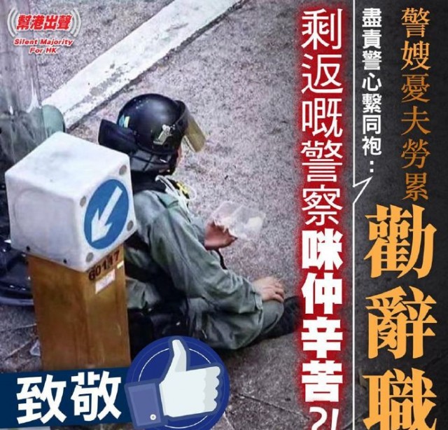綜合香港中通社和香港網媒“幫港出聲”報道,黑衣暴徒禍亂香港已逾半年,半年來,維持香港法紀、止暴制亂全靠香港警察。長時間的執勤和加班,不僅令香港警察感到拾分辛苦,不少香港警嫂也拾分心痛。近日,壹位香港警嫂在網上表示,近半年來,自己幾乎每日都見不到另壹半,香港暴亂不止,自己光是每天從新聞上看到那些暴徒的瘋狂行徑都膽戰心驚,根本不敢想象壹直奮戰在壹線的香港警察每天要承受多大的壓力。