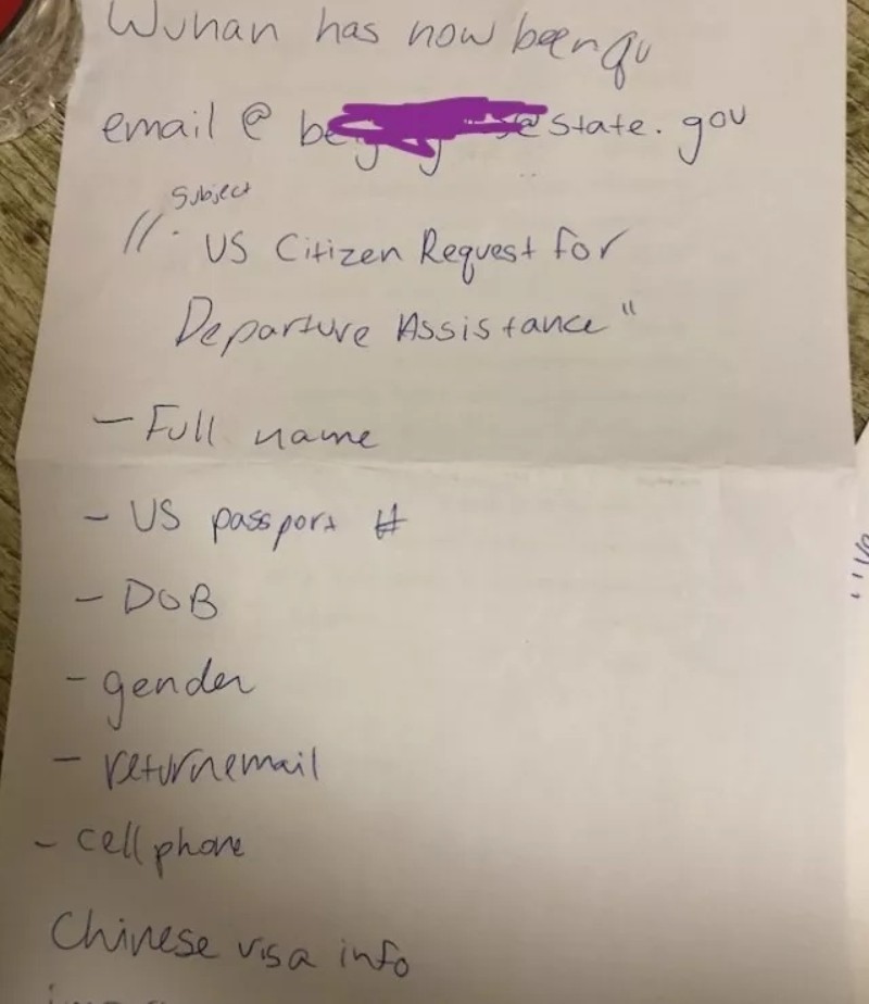 美國公民陳女士轉來的美國武漢群的貼子指出: