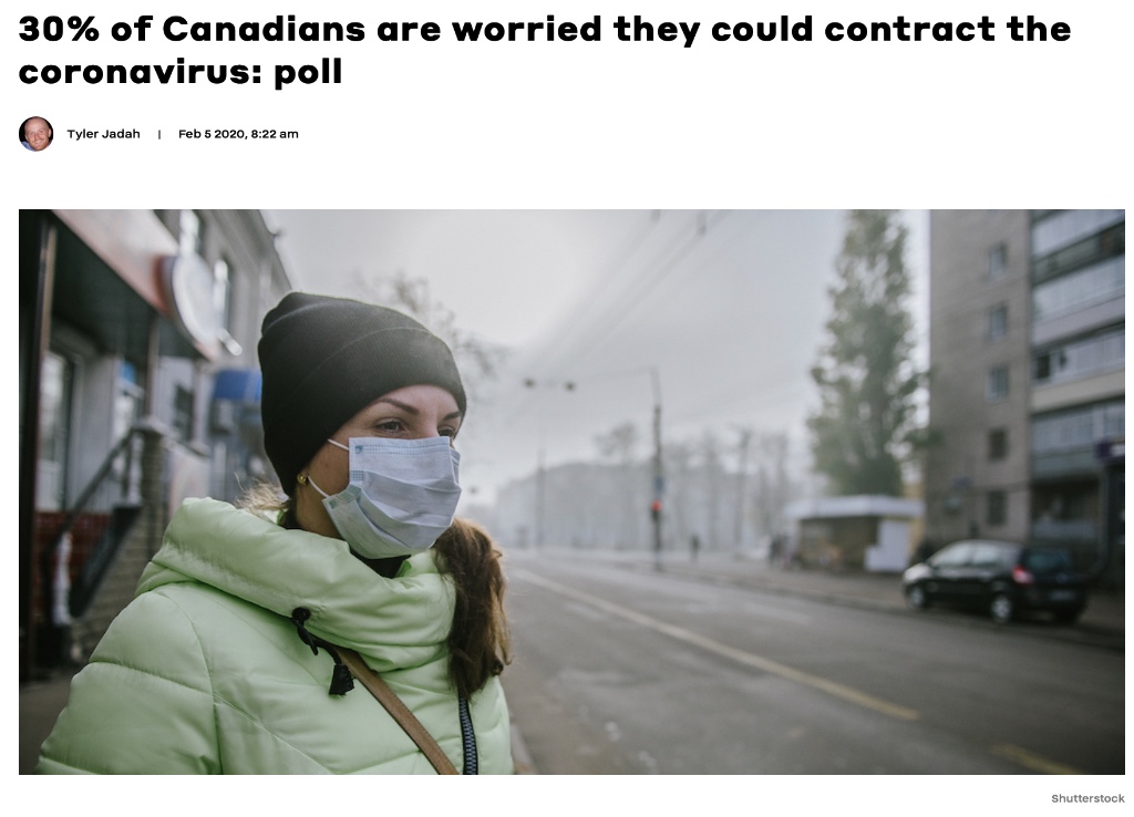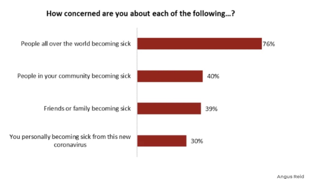 除了自己感染病毒外,超过四分之三(76%)的加拿大人担心该病毒是否会使来自“世界各地的人们”感染。现在已有28个国家中有确诊病例,绝大多数病例在中国大陆。