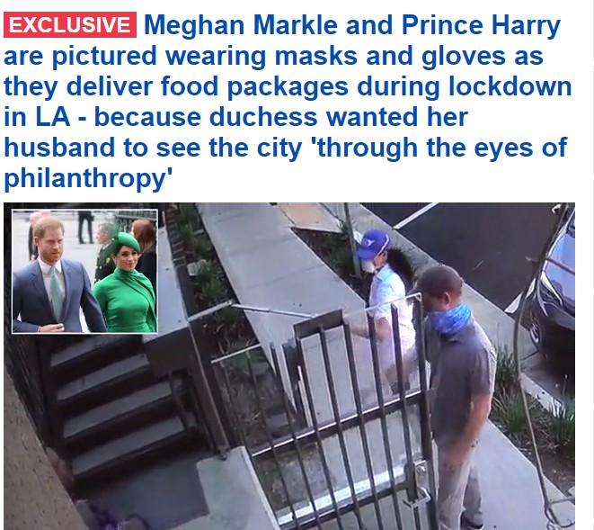 梅根看起來好專業,而哈裡壹直在肆處張望,梅根戴上口罩戴著帽子,低調的做善事送食物