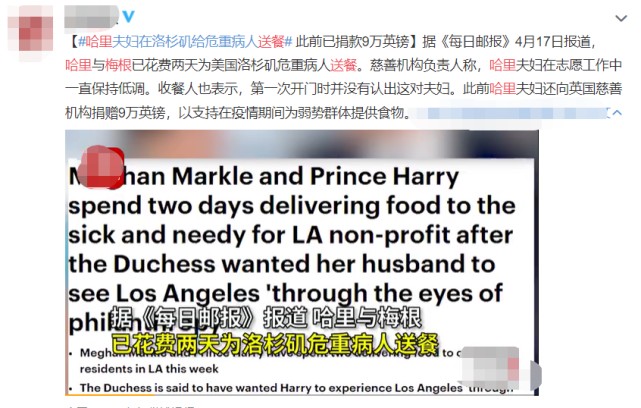 根據爆出的圖片和視頻顯示,這夫妻倆事秘密行善,在南加州洛杉磯派餐給壹些受新冠肺炎疫症影響及在生活上有困難的人。