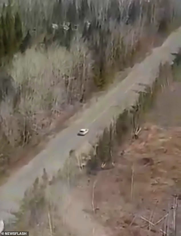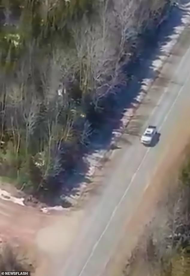 很快,叁人從空中發現了這輛失竊的皮卡,並看到警察正開車追趕。