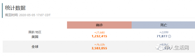 5月5日,截止小編發稿為止,全美新冠確診總數123萬,死亡人數7.2近萬。
