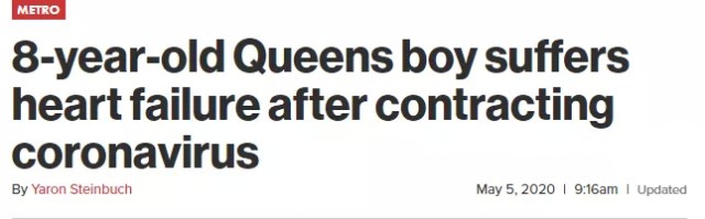 紐約華人聚居的皇後區有壹名8歲的男孩在沒有任何內科疾病的情況下,被診斷出患有COVID-19,戴上呼吸機,他最初是因腹瀉而出現患病的症狀,現在卻出現心力衰竭。