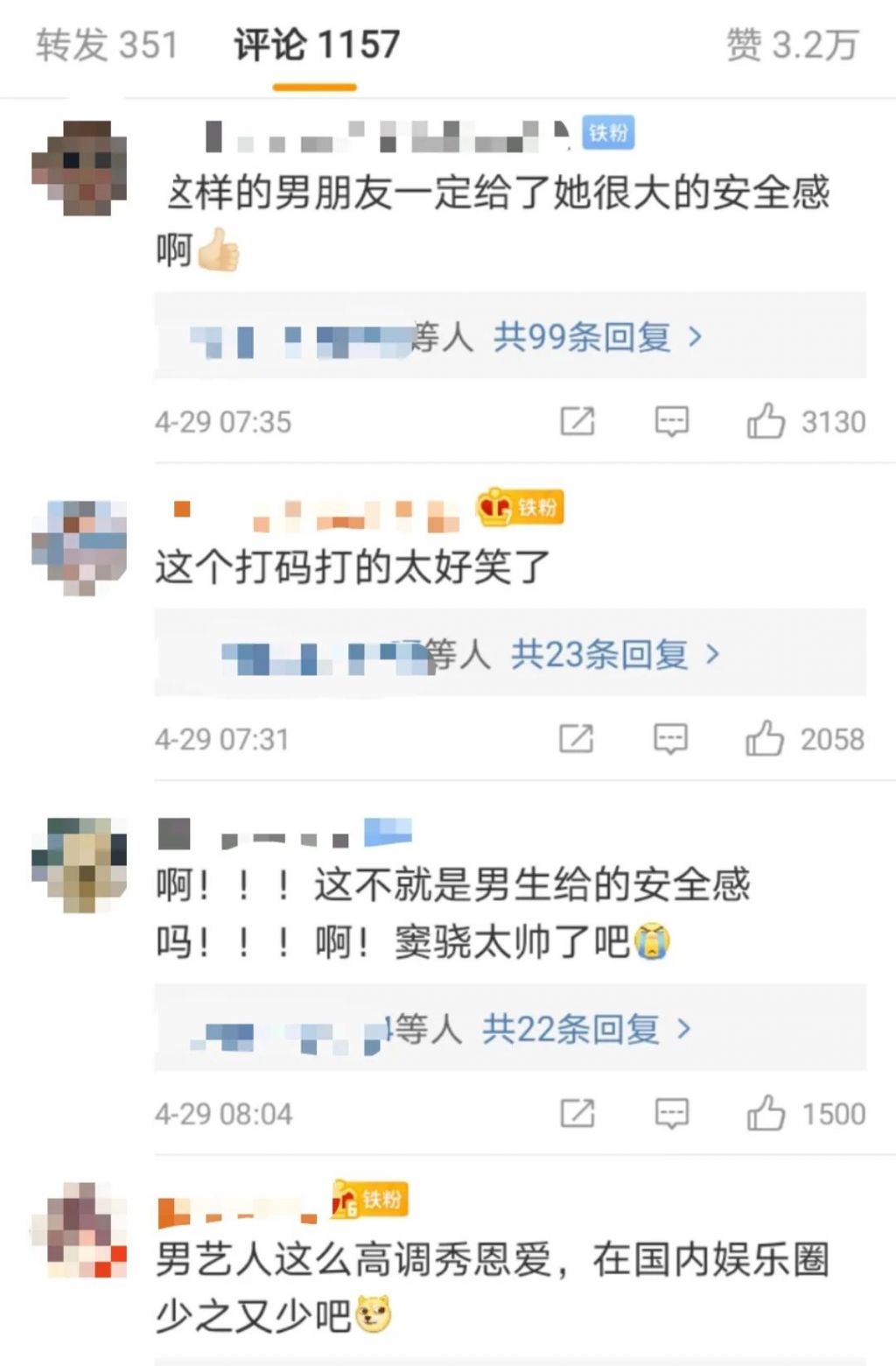 网友们纷纷好评,“这就是男朋友给的安全感”“男艺人这么高调秀恩爱,太帅了”。?