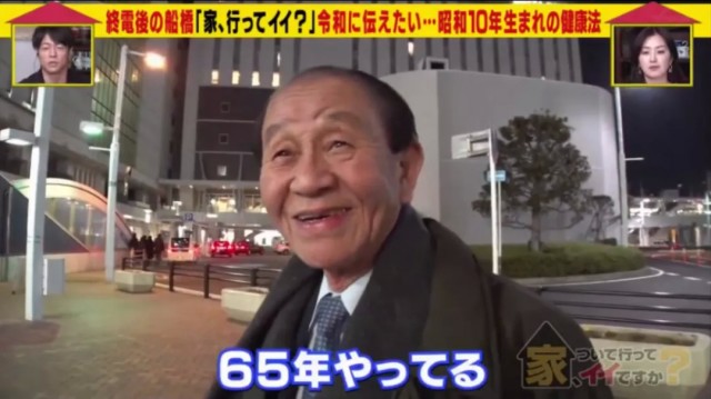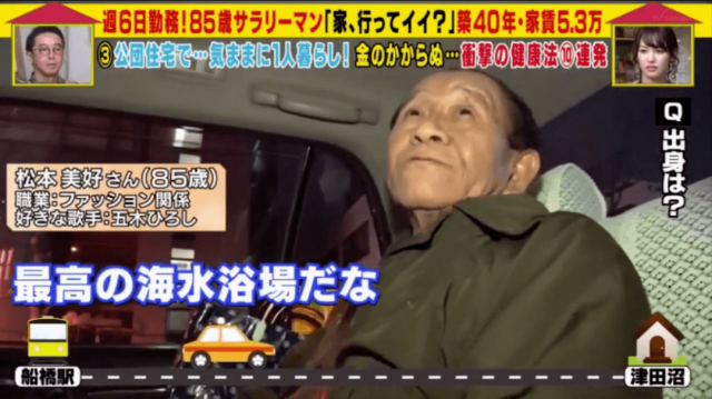 出生於福井縣的松本老爺子,85歲的時候還在上班,節目組遇到老爺子的時候,老爺子剛好是下班喝了點小酒准備回家的路上。