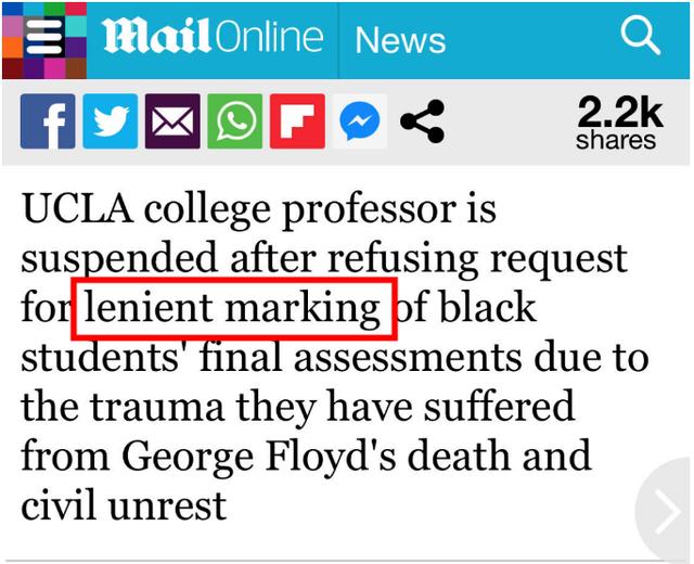 什麼叫“特殊待遇”,媒體報道存在出入,有說是要求推遲期末考試時間,也有說是要求期末考試給黑人學生評個高分,總之,是有違考試公平性的特殊要求。