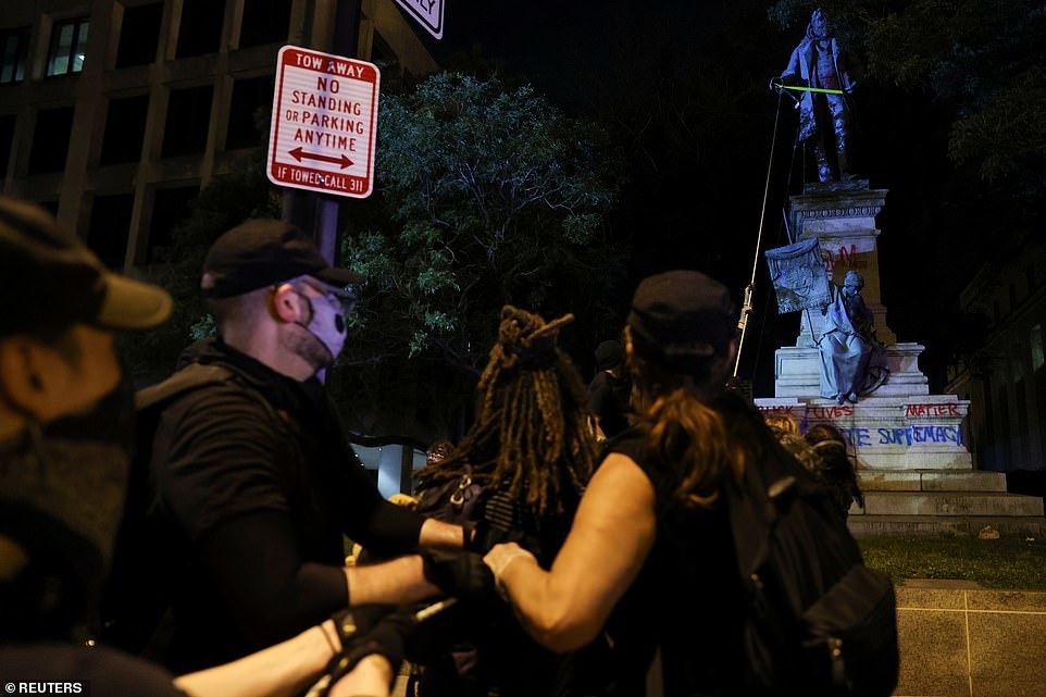 在此之前,美国有线电视新闻网(CNN)曾报告指,有数名武装和无武装的公民正在保护雕像免遭污损。