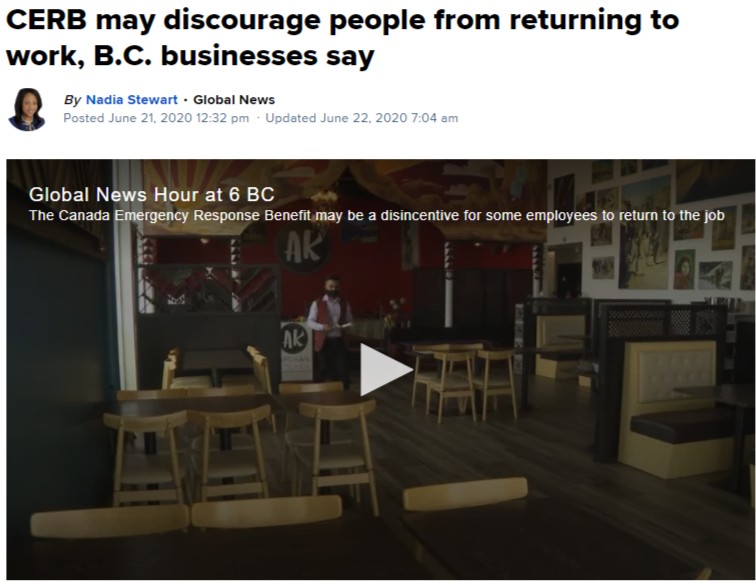 不過這項福利也在近期頻頻被政客、媒體和評論人士抨擊,指這種方式助長了懶人不工作的風潮。很多BC的企業主表示,想招聘員工重啟經濟,卻發現壹大堆領著CERB的人壓根不想出來工作了。