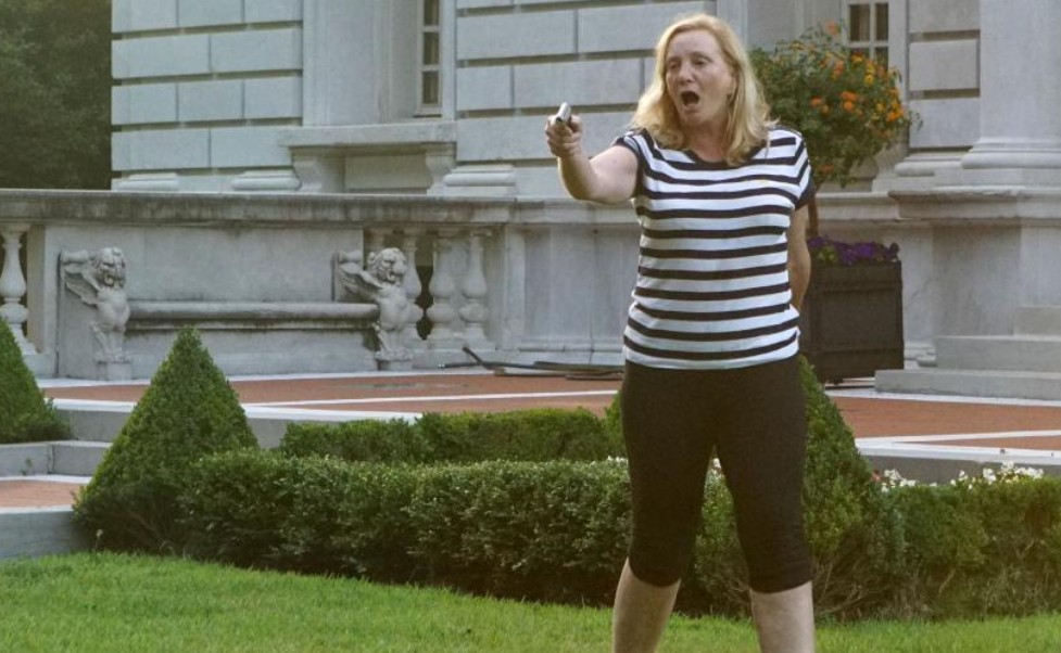 女子用手槍威脅游行人群,讓其離開自己房屋
