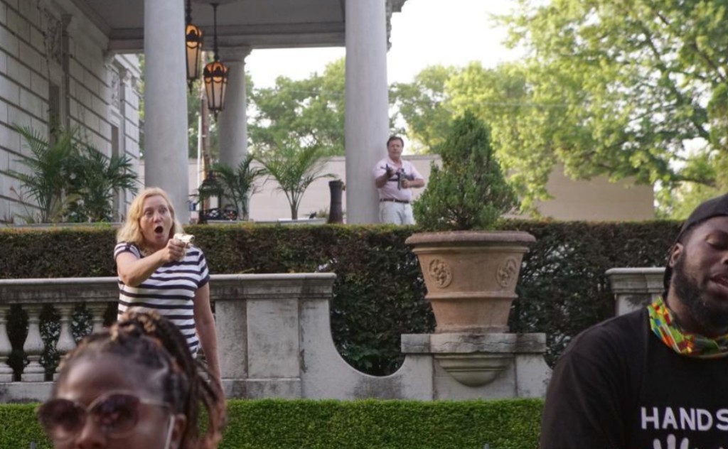 視頻顯示,這對夫婦手持槍支對著主要由黑人組成游行示威者大喊