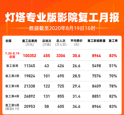 中國證券報記者獲悉,全國復工影院總數目前接近9000家。截至2019年底,全國可統計影院共12408家。