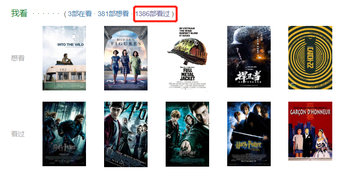 豆瓣記錄已看過1386部影視,截至發稿日。