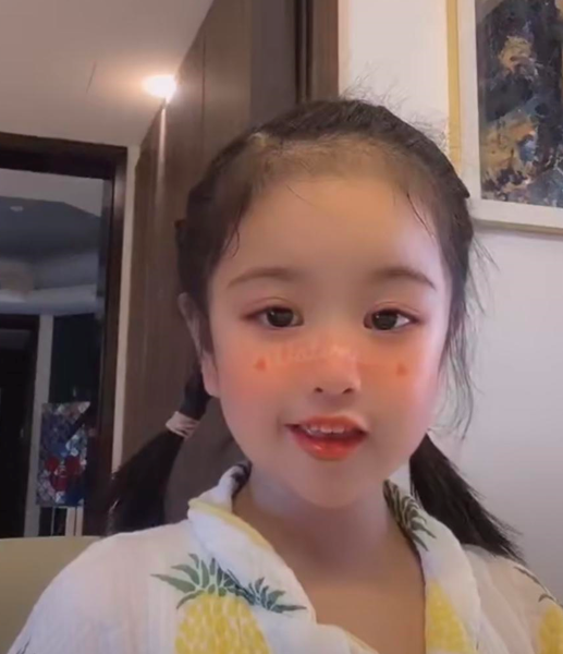 如今的餃子看上去從表情包轉型到了小公主,穿著壹個菠蘿印花的睡衣還扎了雙馬尾,眼睛也從之前的內雙變成了現在的雙眼皮,看起來拾分漂亮。