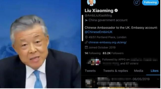 中國駐英國大使劉曉明官方推特(Twitter)帳號被發現點贊色情影片,中國駐英使館今天聲明遭到反華分子"大肆惡搞",敦促推特調查。