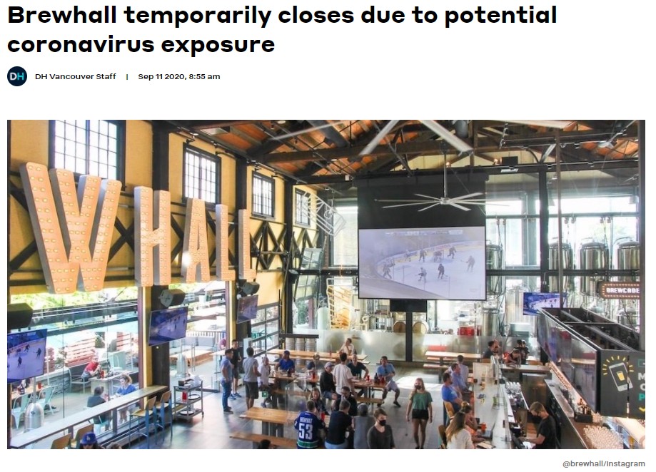 位於溫哥華東2街97號(97 E 2nd Avenue)的Brewhall 餐廳+精釀啤酒吧於昨晚(9月10日)發布聲明,餐廳有暴露新冠病毒風險及相關細節。