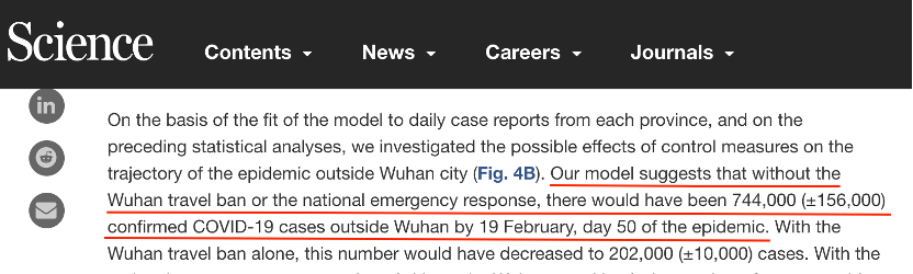 美國《科學》雜志4月發表的壹項研究顯示,中國在疫情暴發最初50天采取的嚴格防疫措施,可能避免了數拾萬病例的發生。文章的作者之壹、牛津大學客座教授克裡斯托弗·戴伊在聲明中表示:“中國的防控措施似乎已經奏效,他們成功切斷了傳播鏈,阻止了感染病例和易感人群的接觸。”