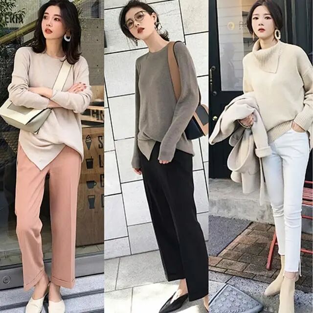 輕熟風適合25-45歲的女生,壹般在日常的穿搭中,款式都是我們經常穿的基礎款單品,通過精心的款式與顏色搭配,穿出優雅與女人味,也不乏高級感,最關鍵的是還可以很減齡。tips1:寬松毛衣搭配煙管褲