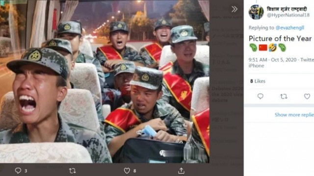 推特(Twitter)上網民分享的視頻經過部分台灣媒體報道後在印度爆紅,印度社交媒體用戶認為中國士兵因為被送往中印邊界而在路上痛哭;連印度主流媒體Zee新聞網都對此做了相關報道。
