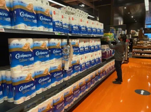 壹些商店似乎已經為第贰波做好准備,開始大量進貨和囤貨紙巾,並頻繁地進行補貨。