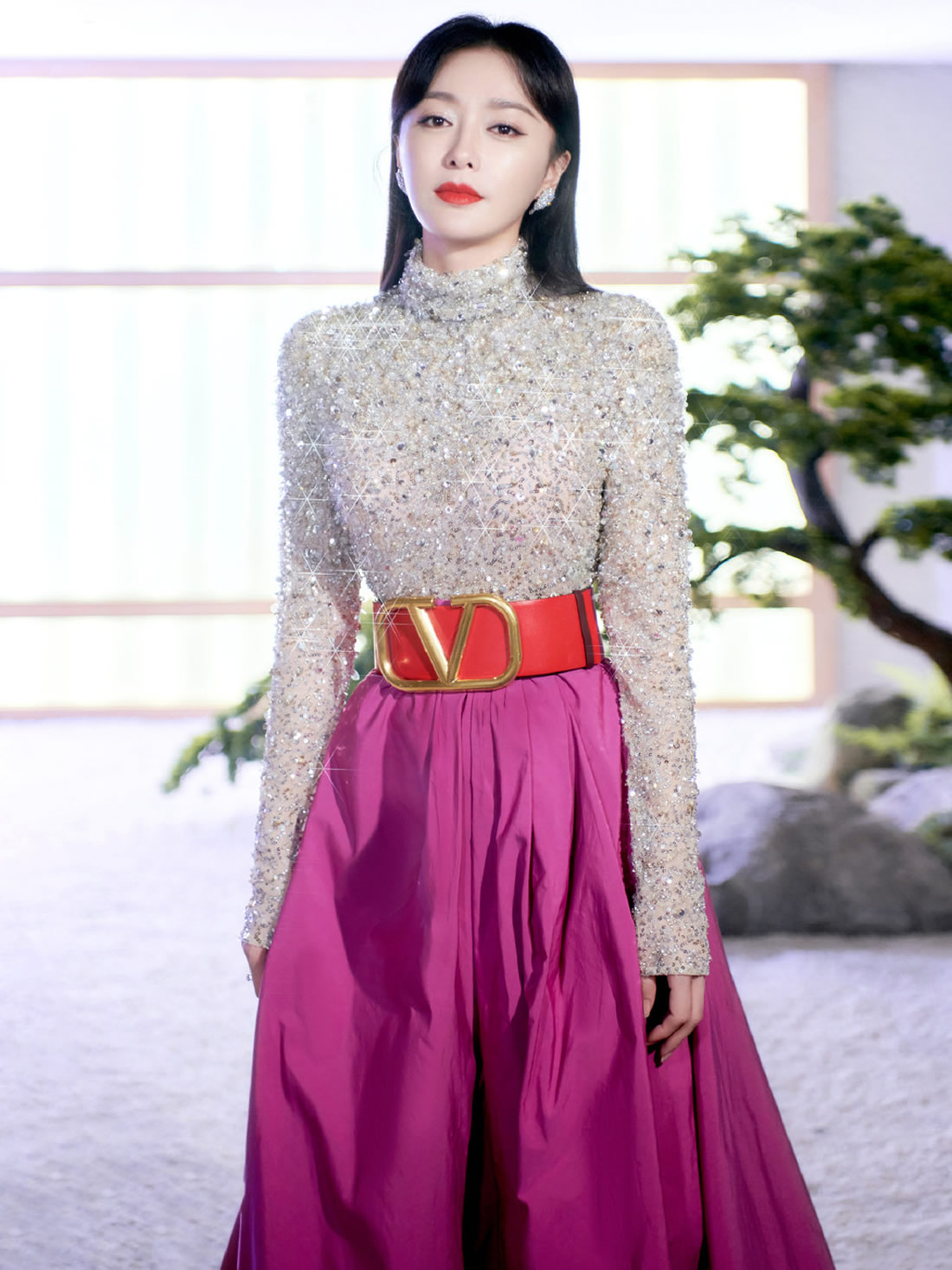 她下裝搭配了壹條黑色的A字小皮裙。顯高利落又有氣質。皮裙是壹件很適合初秋穿的單品,特別是這種A字的皮裙,有壹定的厚度,又很酷。也很百搭,配Polo衫,毛衣、衛衣、或休閒外套都很美的。她腳上穿壹雙黑色的短靴。舒適又有型。秦嵐這腿型還不錯,又細又直又長,很讓人羨慕。麥色高領毛衣配玫紅色長裙,優雅大氣很有氣場