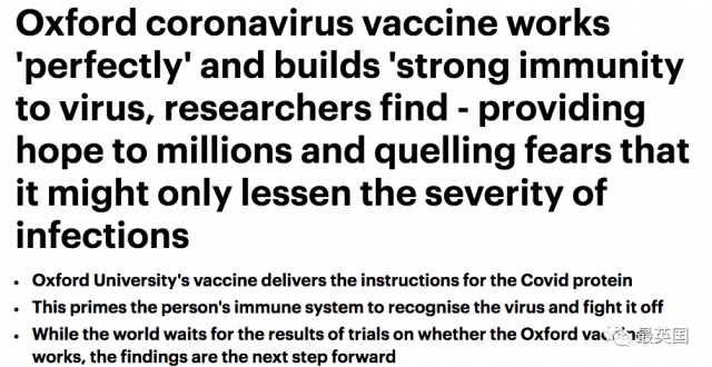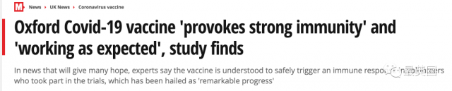 牛津疫苗的接種效果完美,可以強烈激發接種者對病毒的免疫力。