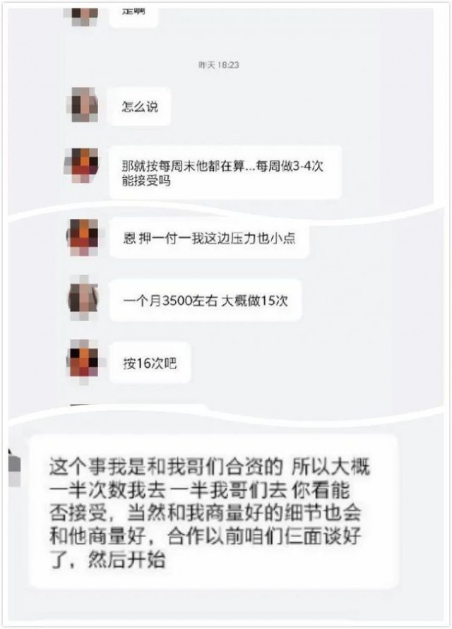 商量到最後,兩人從壹周的2-3次,到最後的每月16次,甚至當對方提出離譜的“哥們輪流”時,女生也答應了。