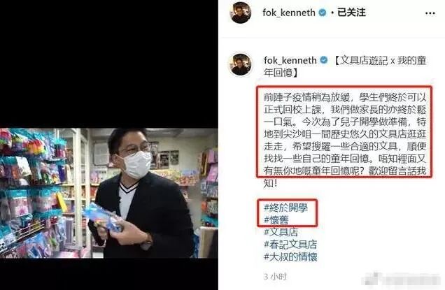 前兩天,霍啟剛在社交媒體上曬出了壹段為兒子買文具的生活vlog,本以為只是壹段簡單的日常片段,可沒想到網友們卻被糊了壹嘴的狗糧。