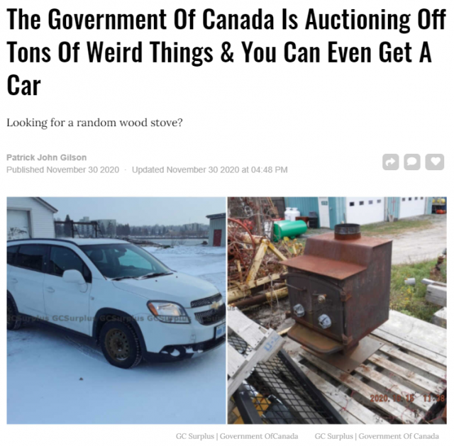 現在正處於年終大促剁手季,大家伙都在瘋狂買買買。然而許多人都不知道加拿大有這麼壹個網站,裡面的東西品質高,且價格低。這神奇的網站就是加拿大政府官方拍賣網站GCSurplus,多年以來,以競價的方式出售各種稀奇古怪的商品,包括汽車、電器和電子產品。