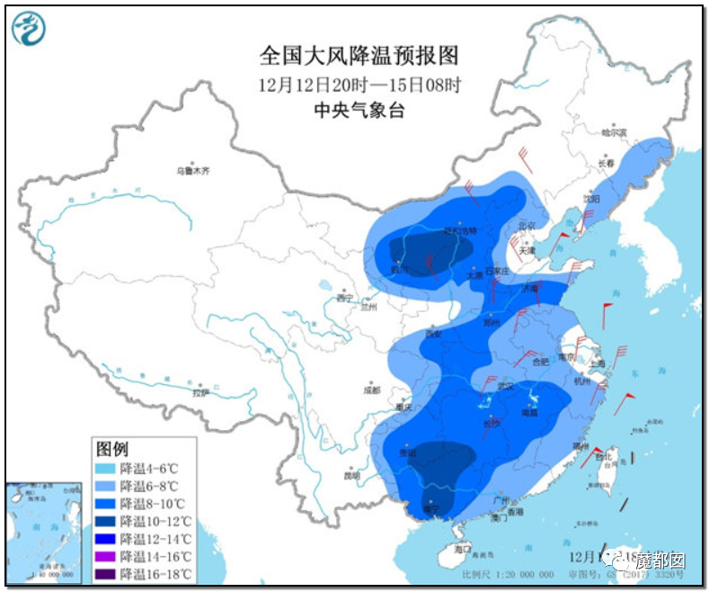 可以看到,这次的寒潮非同小可,包括南方很多地区都会处于零度左右,部分地方会下雪、霜冻。我们划线的地方大家看一下,这个是灾害天气,道路结冰是很严重的灾害!