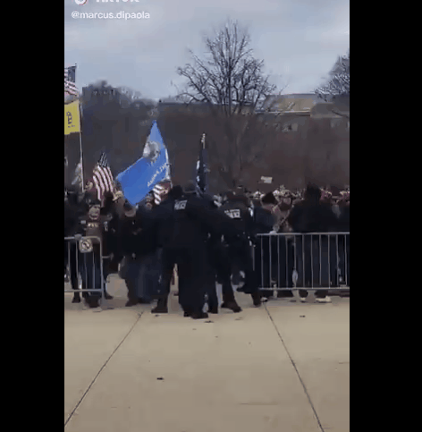 《纽约时报》援引的一则视频显示,警察主动打开栅栏,放行示威者