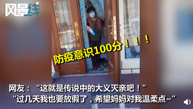 大学生回家被亲妈堵门外喷消毒液,通知爸爸赶紧上报,网友:亲妈无疑