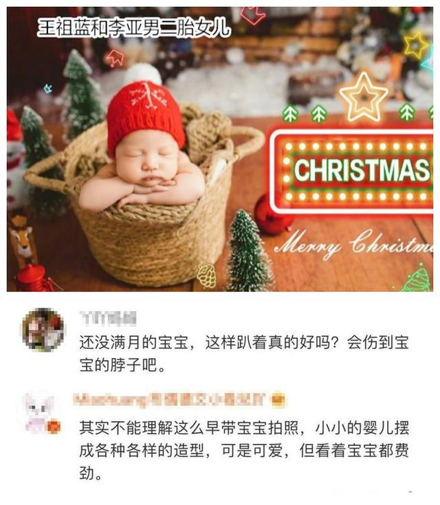 网友B:“其实不能理解这么早带宝宝拍照,小宝宝摆成各种造型,看着都费劲。”