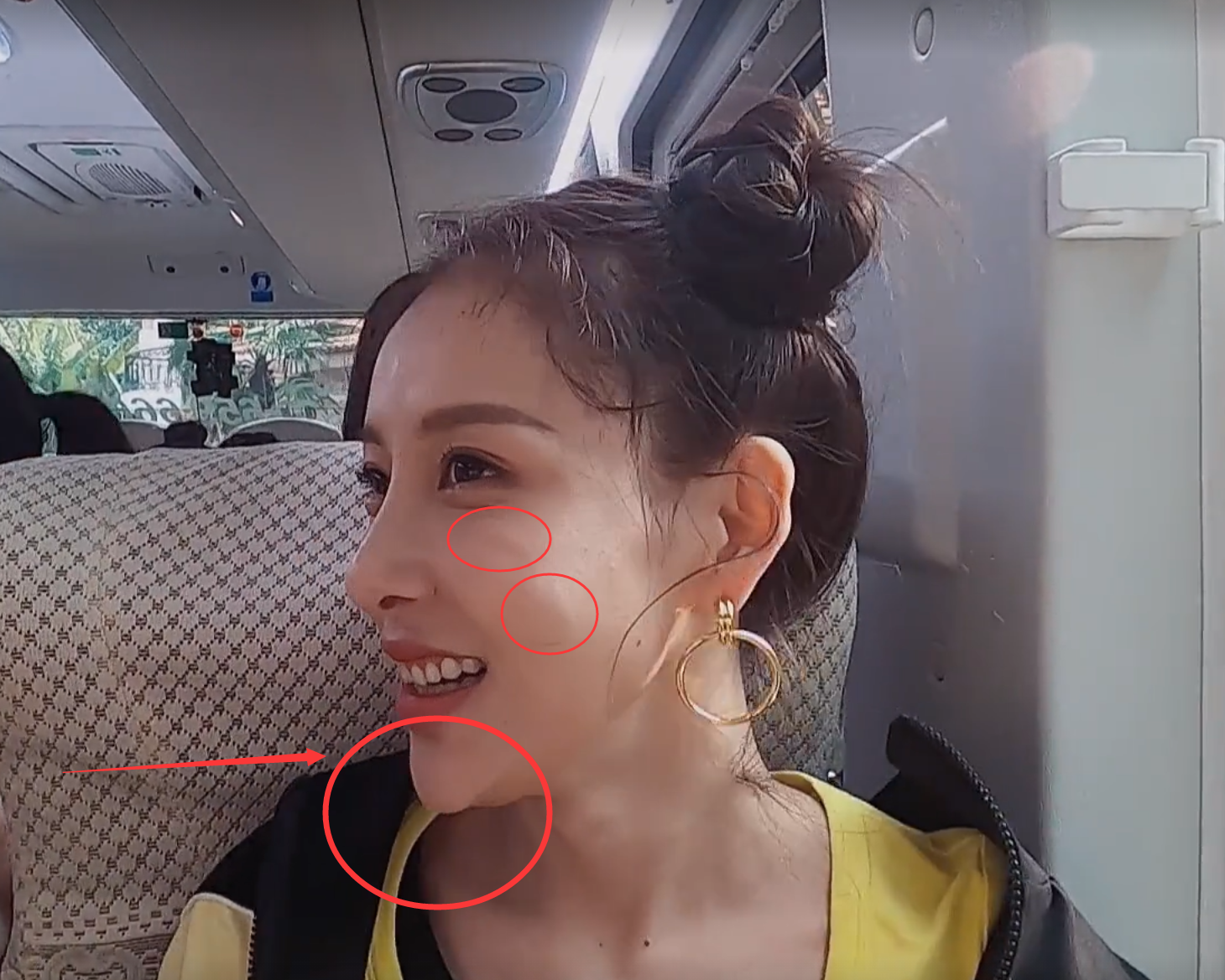 尖下巴非常搶鏡,細看的話,臉上還能看到壹些不規則腫塊。