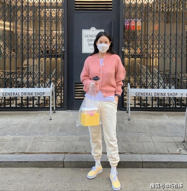 暖色調單品是正式邁入春天的象征,這種色系的單品有藍天白雲做陪襯,自帶美顏效果,唯美仙氣。其中,最具代表的是趨近於白色的嫩黃色,它和萬物復蘇後吐露出嫩芽的綠植相互配合。它可以附著在緊身高領打底衫上,也可以出現在外穿款式的連帽衛衣上。