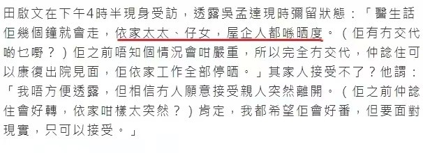 從那以後吳孟達便再也沒有更新,想必在醫院裡繁雜的治療拖垮了他,也沒有力氣再和朋友打字聊天說話,每天都在頑強對抗病魔。