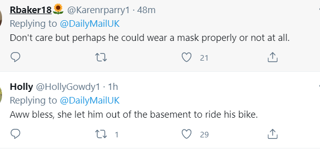 哈利認為,女王看到他們的采訪後傷心,但沒有生氣!哈利(Harry)身穿New Balance運動鞋,連帽上衣,62英鎊的阿迪達斯運動褲,戴著退伍軍人協會棒球帽,太陽眼鏡和口罩,在奧普拉的采訪後他騎車時顯得嚴肅,因為奧普拉的采訪讓他們兩口子成為全球頭條新聞。