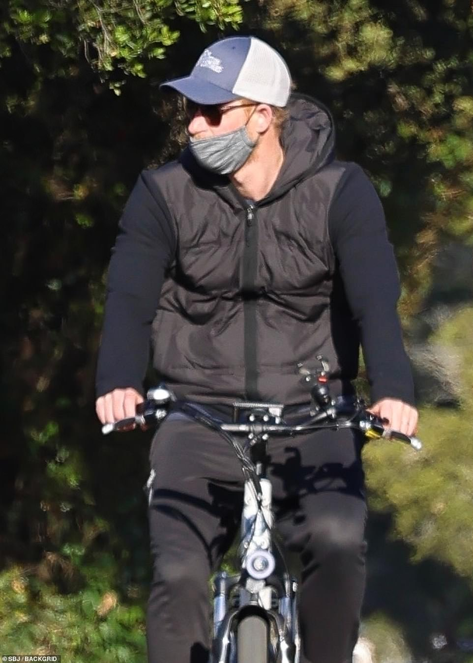 哈利和梅根以及和兒子阿奇(Archie)住在他們價值1400萬美元的豪宅中,哈利騎著壹輛昂貴的電動自行車,身後是4x4的安全團隊貼身護衛。