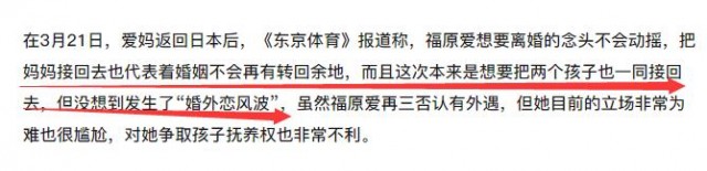 但是,據日本媒體報道,因為“婚外戀風波”,導致福原愛在“搶孩子”這件事上,處於不利的位置。本來想把孩子和媽媽壹起接回日本的她,決定先把媽媽接回日本,打算長期抗戰。