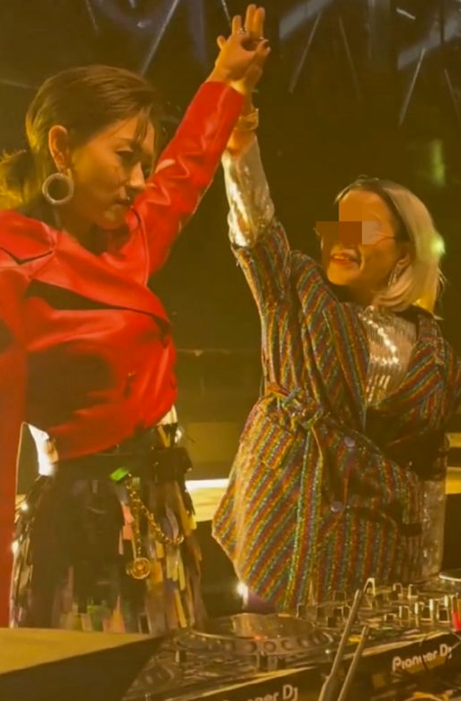 她身穿紅色皮衣,拾分亮眼,玩起來絲毫沒有明星架子,但她蹦迪的氣勢比普通人要更強大壹下。瞬間帶動了場內的氣氛。
