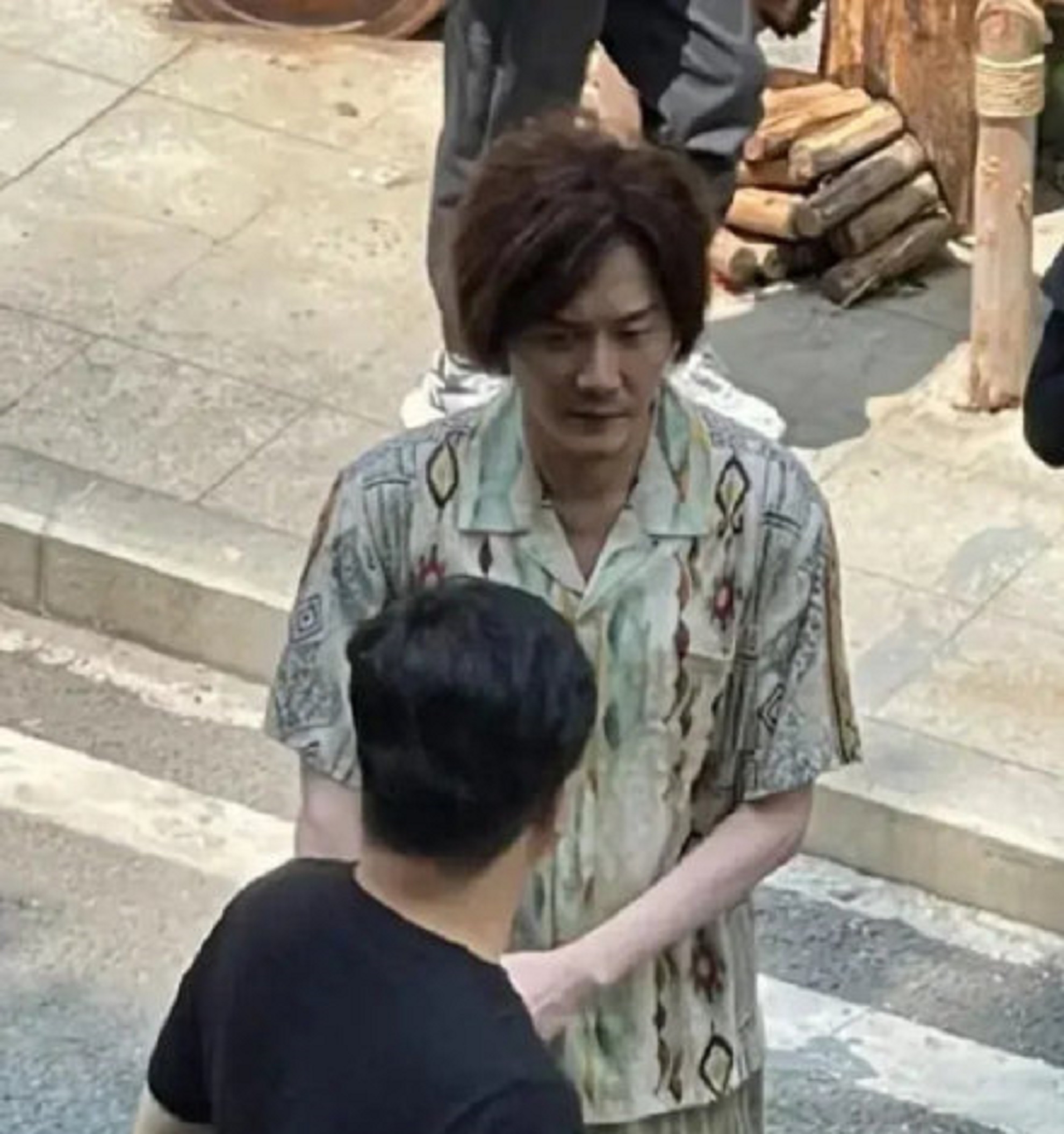 照片中,馮紹峰身穿花紋短袖襯衫,下面搭配寬松的綠色褲子,蓬松的長頭發顯得非常雜亂,而他臉上的胡茬也很顯眼,整體的狀態似乎有些不好。表情壹臉嚴肅,正在和對面穿黑色衣服的工作人員協商拍攝工作。